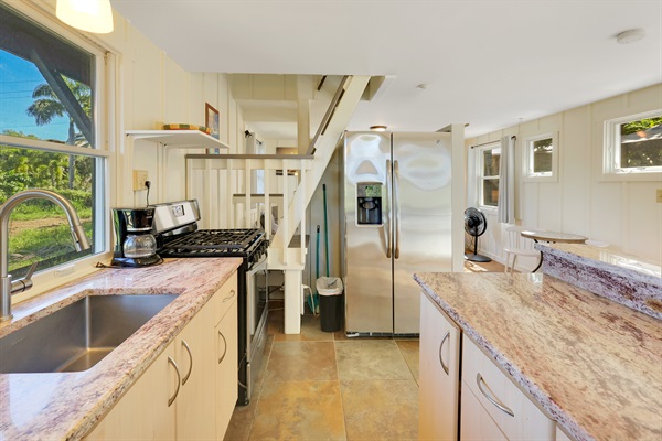 Private home with spectacular views! Enjoy this comfortable cottage-like 2 bedroom, 1 bathroom home with gated parking, AC in both bedrooms, cable TV, 32 inch flat screen, Internet access, and a fully equipped kitchen!