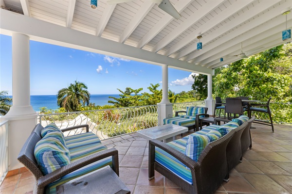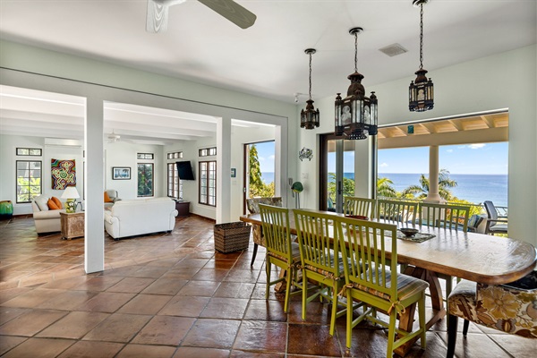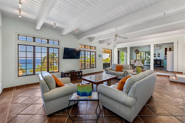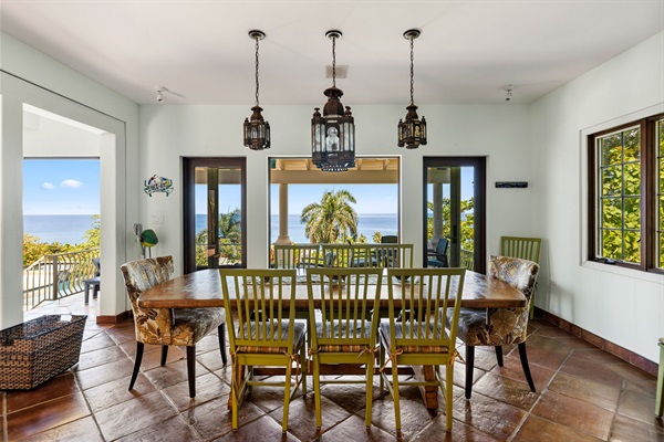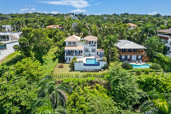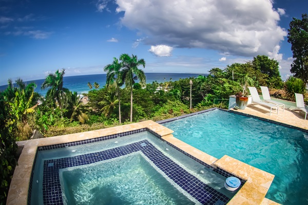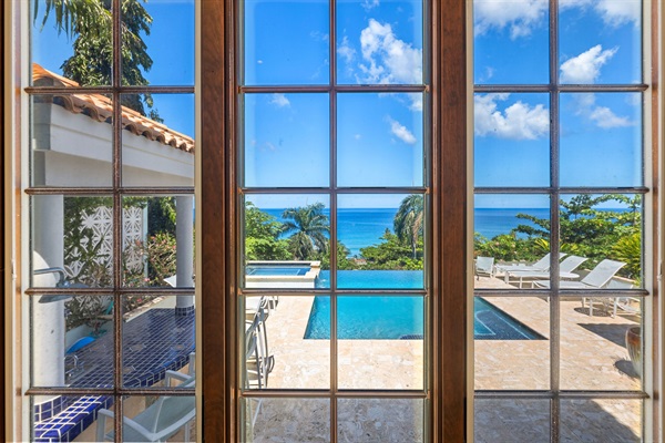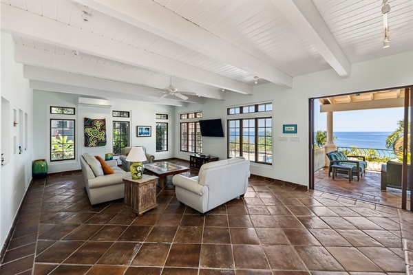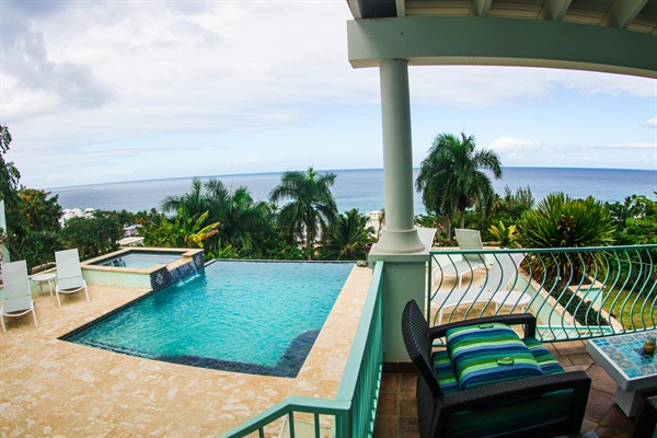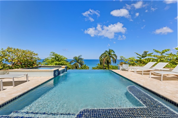 Tranquilo holds an open air layout with 5 bedrooms, each with ensuite bathrooms (studio has 1/2 bath) and separate entrance. On the second floor you'll find the 3 main bedrooms all leading to the outdoor lounge area with a stunning view. On the first floor you have the 4th bedroom, living area, kitchen, dining, laundry room, 1/2 shared bath with steps to the pool and hot tub area. Sit in the infinity pool watching the waves break at world renowned Sandy Beach.