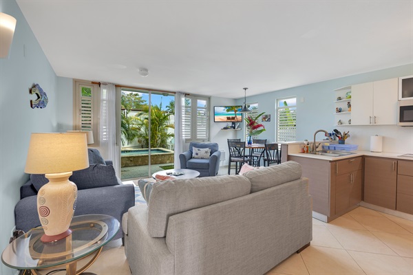 Ours is the most spacious, well stocked, and private of all the wave Wave Coast units. Our style is modern and minimalist, while being fully equipped with top-of-the-line EVERYTHING. Furnished with leather couches, local art, and the cool colors of the Carribbean. We have wi-fi, so you can stay connected, (but we suggest you just go off the grid and enjoy!).